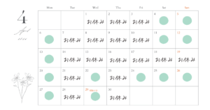 6月初旬ごろまでお休みを多めにいただきます;