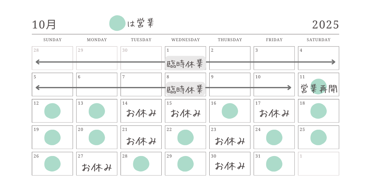 10月の前半は、ドッグカフェ併設工事のため、臨時休業となりますm(_ _)m