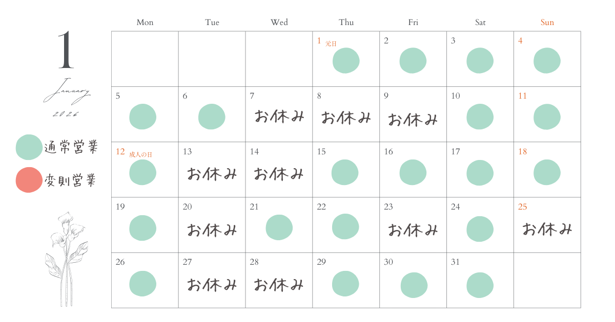 2026年1月のカレンダーを公開します!